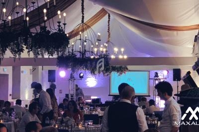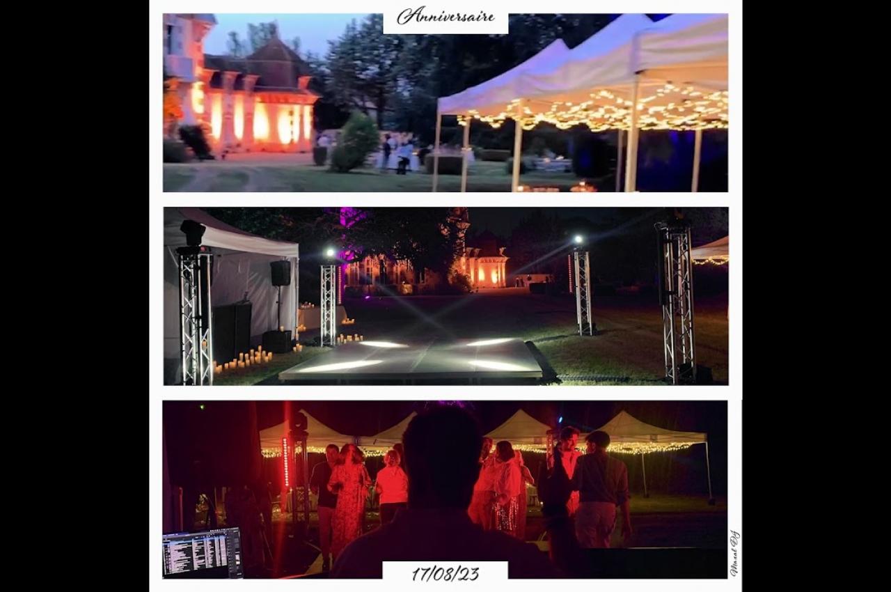 Notre prestation inclut un éclairage professionnel, une sonorisation de qualité, des micros, des mange-debout, des projecteurs architecturaux, des guirlandes lumineuses et une machine à fumée pour une ambiance inoubliable.
