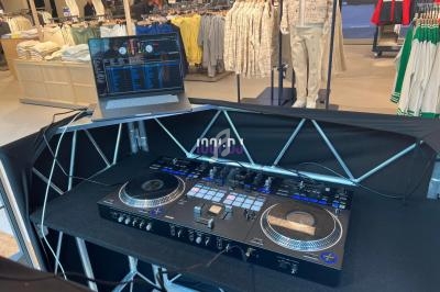 Nous offrons un set complet pour l’animation de vos soirées (MacBook Pro, contrôleur ddj-rev7, système de son de 2000 watts, jeux de lumières).