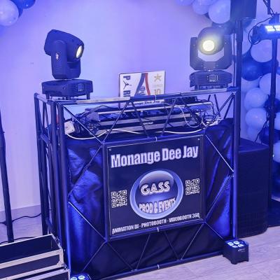 Équipé en matériel son, éclairages et vidéo haut de gamme, ses prestations se distinguent par une installation élégante et soignée. (pas de câbles qui traînent, pas de pub racoleuse...) et une présentation irréprochable et raffinée.