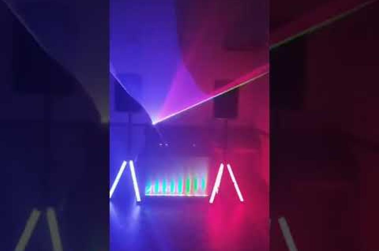 PACK DJLIGHT65 avec 2 Projecteurs contenant chacun 12 LED RVBB puissant + 2 lasers 130mW rouge & vert puissant + PIED avec Barre transversale qui alimente les appareils + Pilotage + télécommande.