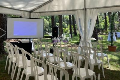 Nos forfaits incluent l'installation, le transport, des micros sans fil, une playlist personnalisée et l'animation du vin d'honneur.