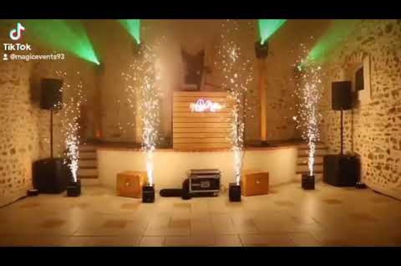 En option, nous offrons des effets pyrotechniques avec 4 machines étincelantes pour votre entrée et votre ouverture de bal, une machine à fumée lourde pour une mise en ambiance unique et des lumières pour une atmosphère plus festive.